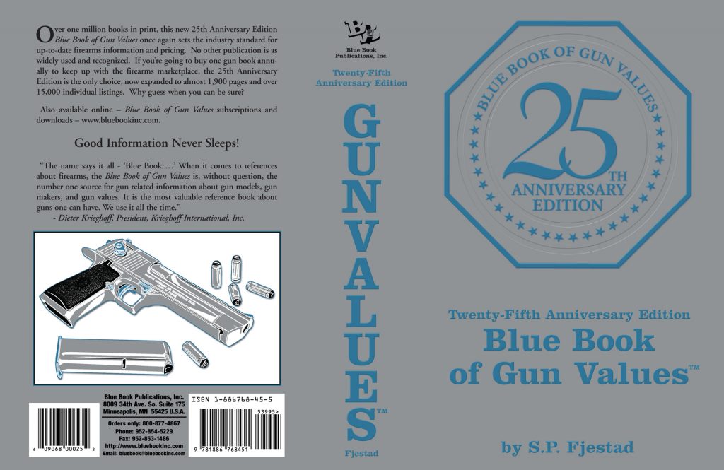 For this anniversary edition, the idea was to use foil and different styles of embossing to give more of a medallion look and feel. We used a metallic silver ink for the overall cover with blue foil. We used a spot UV over the gun image on the back cover along with a matte finish over the white so the gun would outshine the back cover elements.